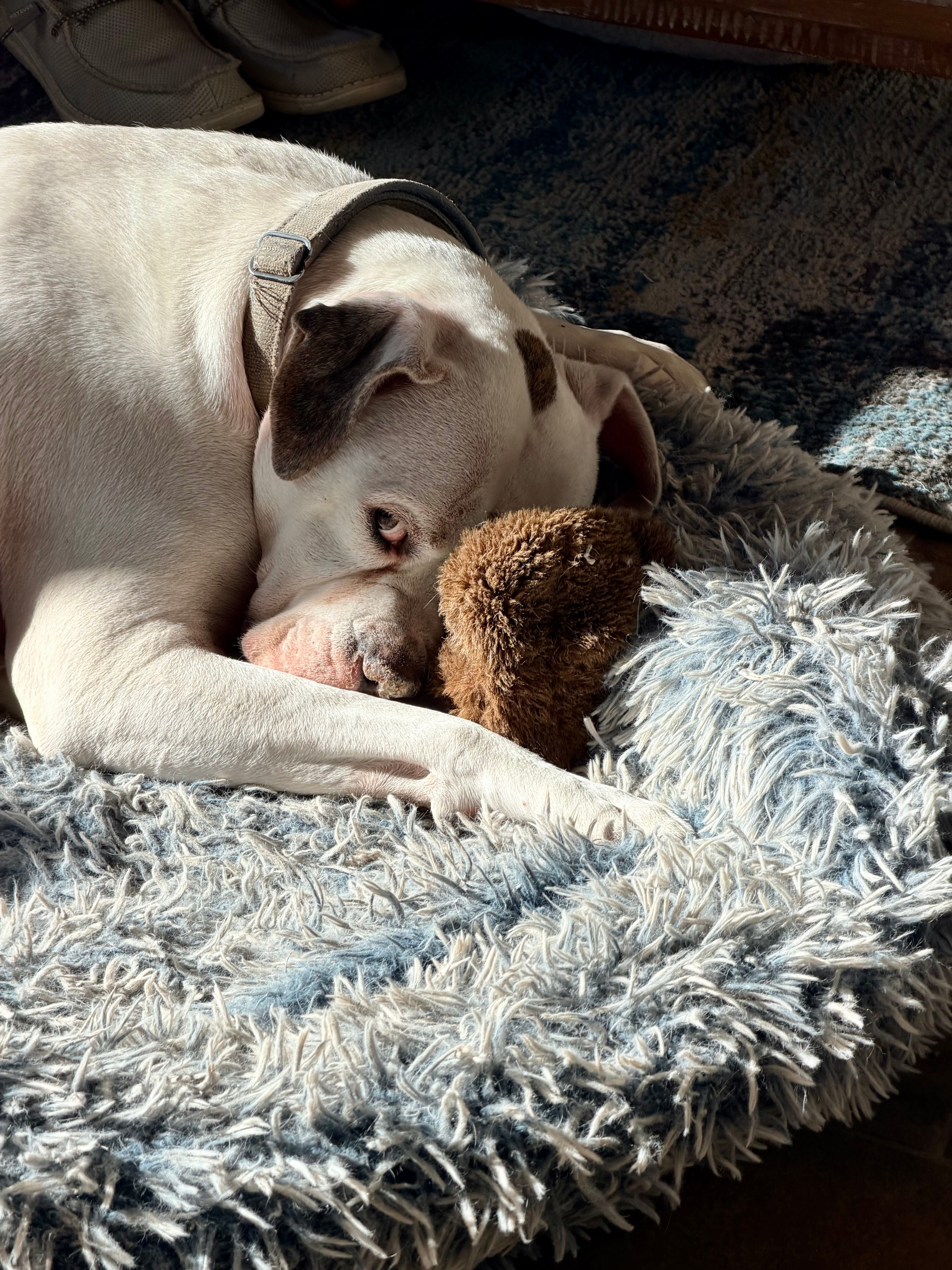 They keep us in the present moment. Grief makes us time travel to the past. It’s easy to get stuck in loops. Dogs drag us back to the present with needs for attention, food, play and of course, bones. They give us a sense of purpose without requiring that we feel better or get over anything.